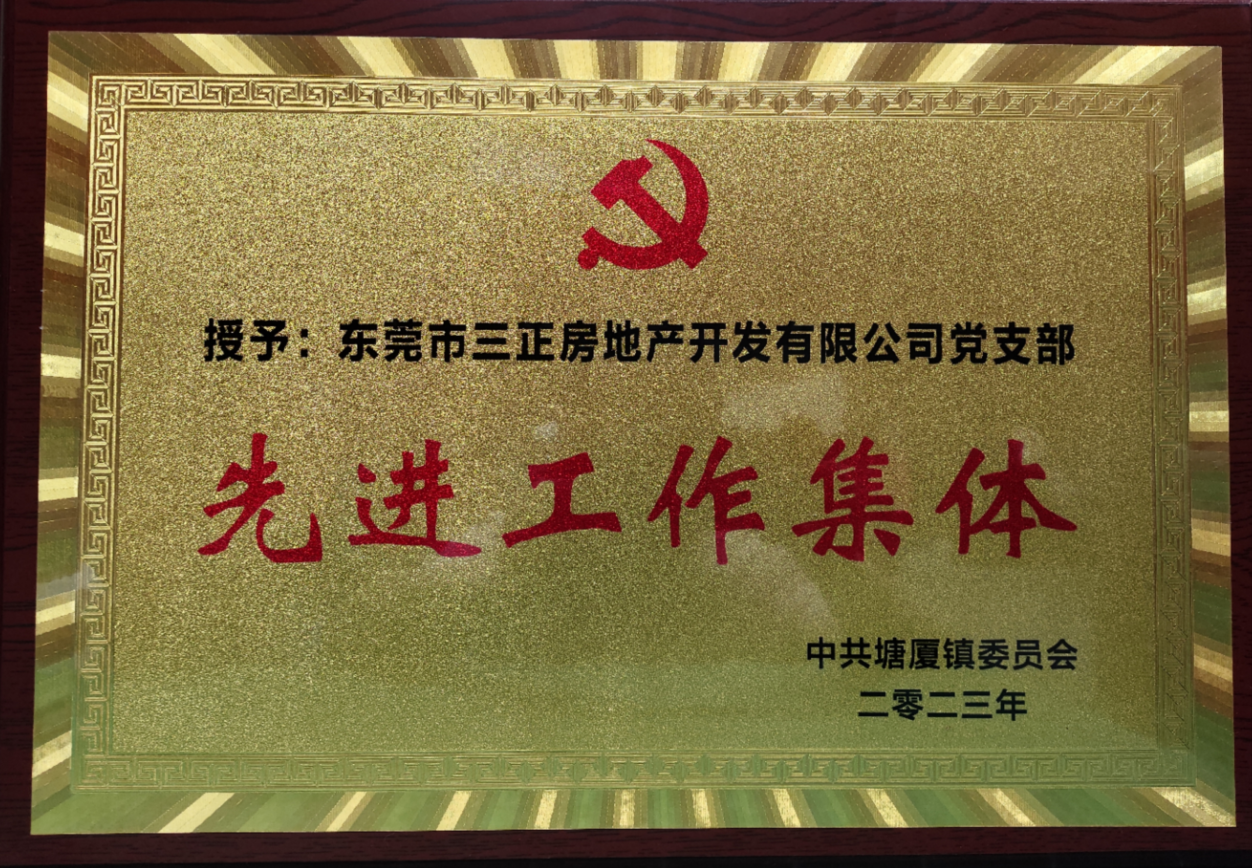 三正房地产党支部喜获“2023年度塘厦镇党建工作先进单位”